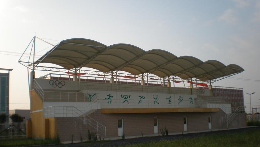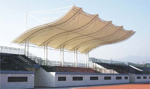 膜结构又叫张拉膜结构(Tensioned Membrane structure),膜结构建筑是21世纪最具代表性与充满前途的建筑形式。打破了纯直线建筑风格的模式,以其独有的优美曲面造型,简洁、明快、刚与柔、力与美的完美组合,呈现给人以耳目一新的感觉,同时给建筑设计师提供了更大的想象和创造空间。
